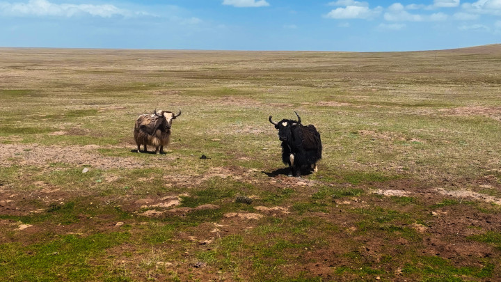如果你是第一次进入可可西里,一定会被这里的荒野“跑团”震惊——成群结队奔赴可可西里腹地的藏羚羊;长着一张“马脸”,喜欢和车辆赛跑的藏野驴;屁股上长有一大块心形白斑,在阳光下闪闪发光的藏原羚;体态壮硕,跑起来像小卡车一样的野牦牛……