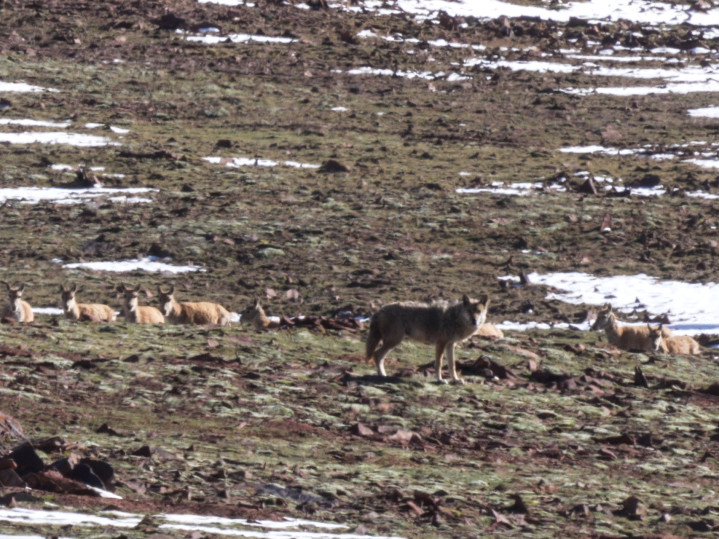 在青海可可西里地区拍摄的狼和藏羚羊群。新华社记者 杜笑微 摄